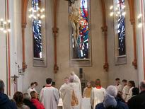 Bild 1 Monsignore Schiller eröffnet den Gottesdienst im Festgewand mit Lullusfeur.