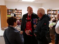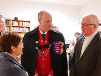 Bild 2 + 3 + 5 Feuermeister und Bürgermeisterin in der Kirchengemeinde