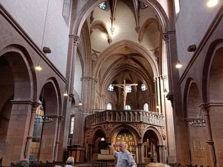 Nach Besuch der ehemaligen Kaiserpfalz, zeigte er uns seine Pfarrkirche St. Peter mitten in der schönen Altstadt und informierte über das Pfarreileben vor Ort. Auf dem Stadtrundgang, nach dem Mittagessen, besuchten wir auch das Wahrzeichen von Gelnhausen, die Marienkirche, jetzt evangelische Pfarrkirche. Eine Besonderheit dieser Kirche ist z. B. der Marienaltar.