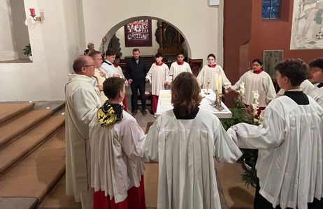 Insgesamt 10 Messdienerinnen und Messdiener machten sich auf den Weg und bekamen in der Grabeskriche der Hl. Lioba interessante Informationen über die Heilige und durften sich ihre Reliquien näher ansehen.