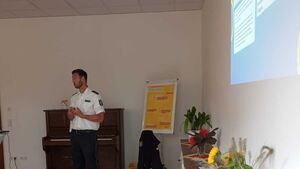 Er sensibilisierte die Anwesenden und zeigte Beispiele auf, wie man im Alltag wachsam und aufmerksam sein kann, um Taschendiebstahl zu verhindern.