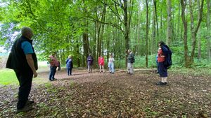 Bei schönem Frühlingswetter fand der Meditative Spaziergang am Sonntag, dem 28. April in einem Waldstück am HKZ Rotenburg statt.